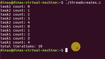 7. Compile dan jalankan thrdcancel1.c dan lihat outputnya